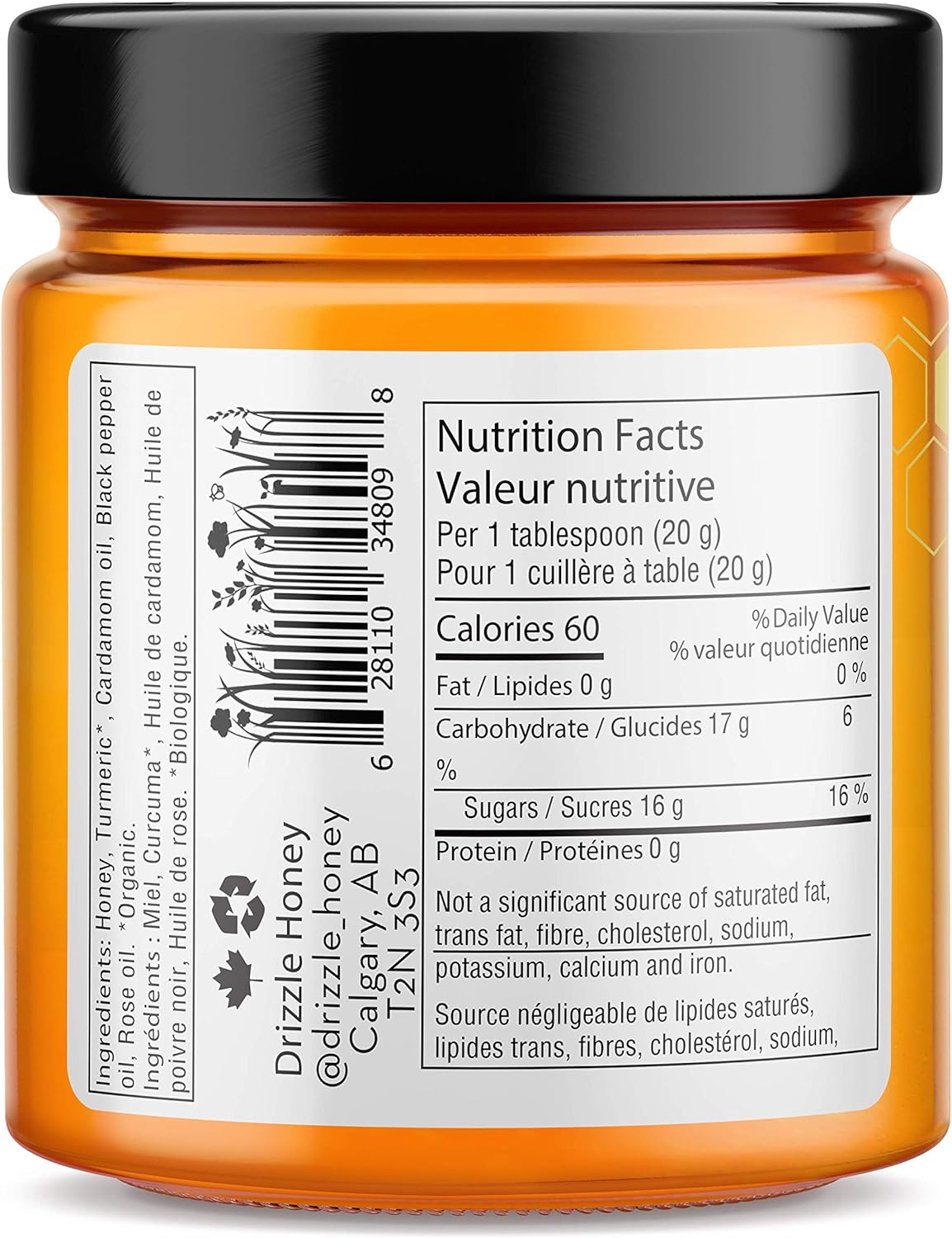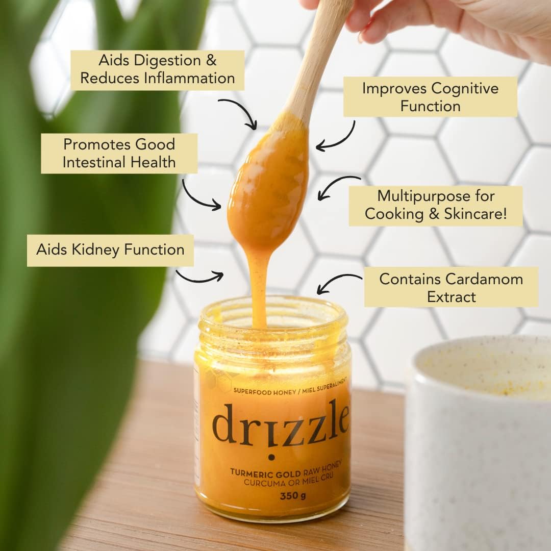 Raw Drizzle honey, Organic Turmeric, Cardamom Oil, Black Pepper Oil, Rose Oil