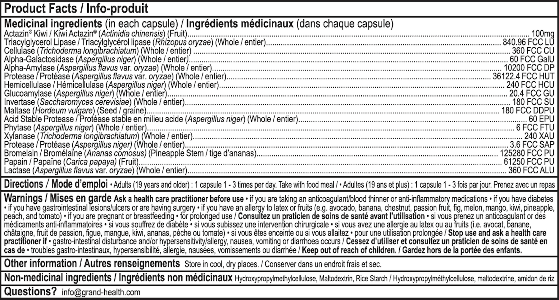 | Ingredients | Patented Actazin® Kiwi Enzyme + 16 Natural Enzymes | Mixed fruit/plant enzymes of unclear origin |
