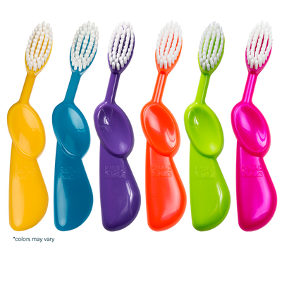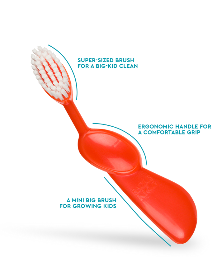 That recognizable shape isn’t just for good looks — the Kidz’ easy-to-hold handle complies with the dentist-recommended 45-degree brush-to-tooth angle and the enlarged Thumb-and-Palm design makes it much easier for small hands to grip and control.