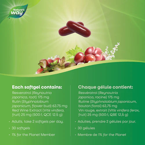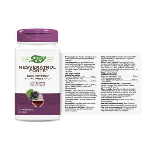 Nature's Way Resveratrol-forte provides antioxidants and is used in herbal medicine as a capillary/blood vessel protectant.