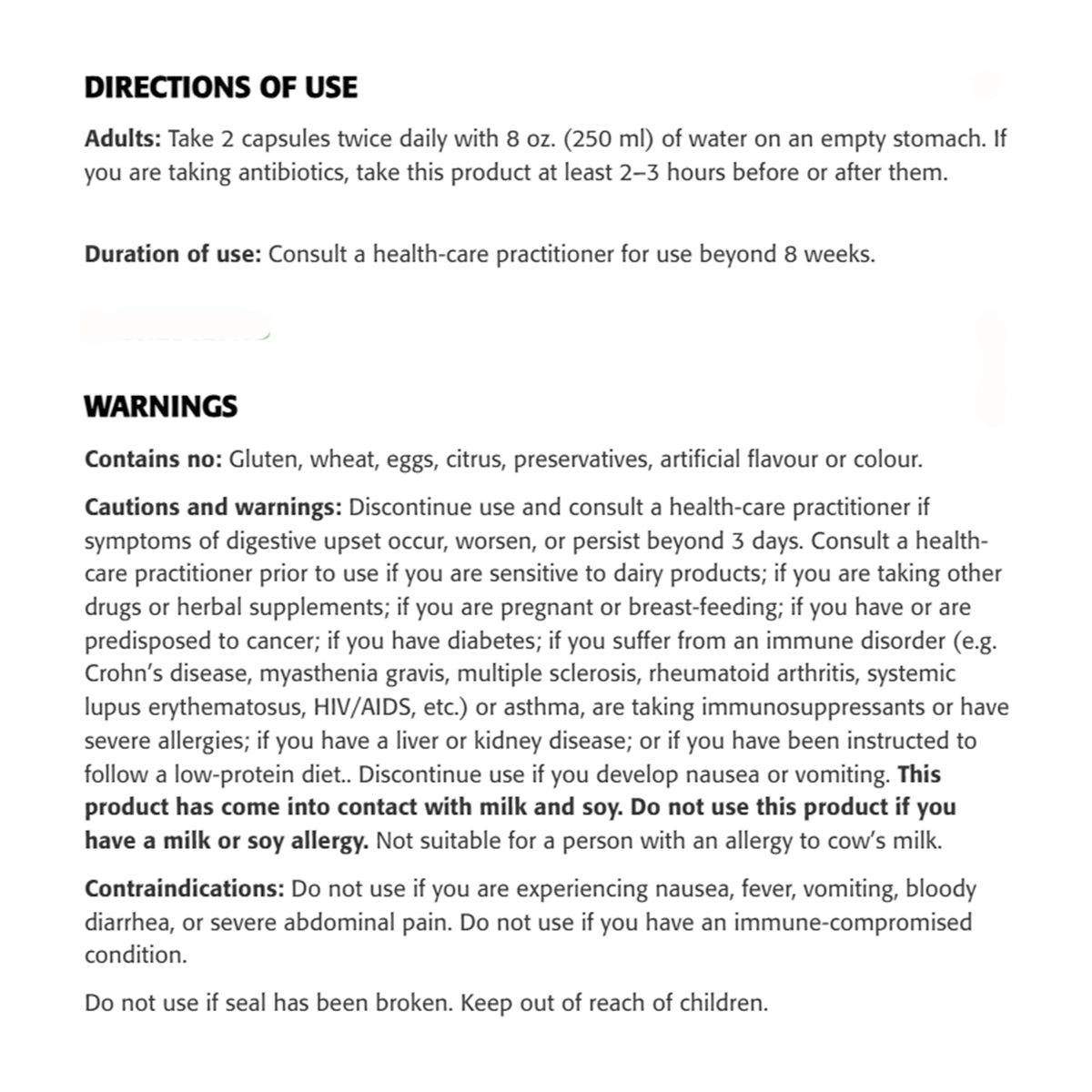 特別注意: 若正在服用抗生素,請確保與服用本產品的時間間隔至少 2 至 3 小時。