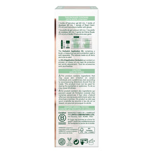 Herbatint 染色凝膠: 月桂醇聚醚-5、純水、丙二醇、PEG-2 油胺 (乳化劑)、乙醇胺、核桃(Juglans regia)殼萃取物、掌葉大黃(Rheum palmatum)根/莖萃取物、金雞鈉(Cinchona calisaya)樹皮萃取物、p-氨基酚、蘆薈(Aloe barbadensis)萃取物 、PEG-75 白芒花(Limnanthes alba) 籽油、紫錐花(Echinacea angustifolia)根萃取物、2-氨基-3-羥基吡啶、對苯二胺、白樺(Betula alba)葉萃取物、金縷梅(Hamamelis virginiana)萃取物、焦亞硫酸鈉、EDTA四鈉、西曲氯銨、間苯二酚、2,4-二氨基苯氧基乙醇 HCL 甘油顯色劑: 純水、過氧化氫、羥乙二膦酸、西曲氯銨 強效滋潤護髮霜: 水、檸檬酸、鯨蠟醇、蘆薈(Aloe barbadensis)萃取物、小麥(Triticum vulgare)胚芽油、荷荷芭 (Simmondsia chinensis)油、辣木(Moringa pterygosperma) 籽萃取物及甘油、抗壞血酸、維生素E、咪唑烷基脲、甲基葡糖醇聚醚-20、乙氧基二甘醇油酸酯、脫氫醋酸鈉、PPG-3芐基醚肉荳蔻酸酯、米糠油、山嵛基三氯乙烯、苯甲酸鈉、香料。