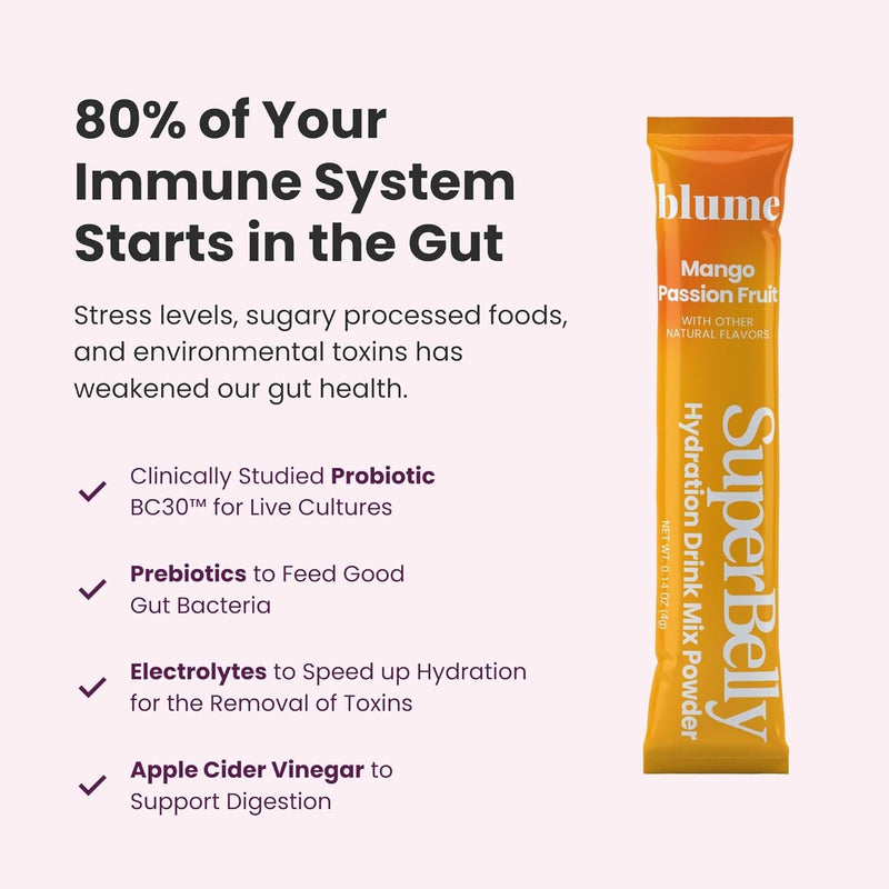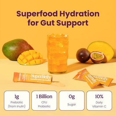 SuperBelly 將我們對超級食物的熱愛,結合菊糖纖維、微量礦物質、發酵蘋果醋,以及經臨床研究的益生菌,有助於維持健康的腸道菌叢。